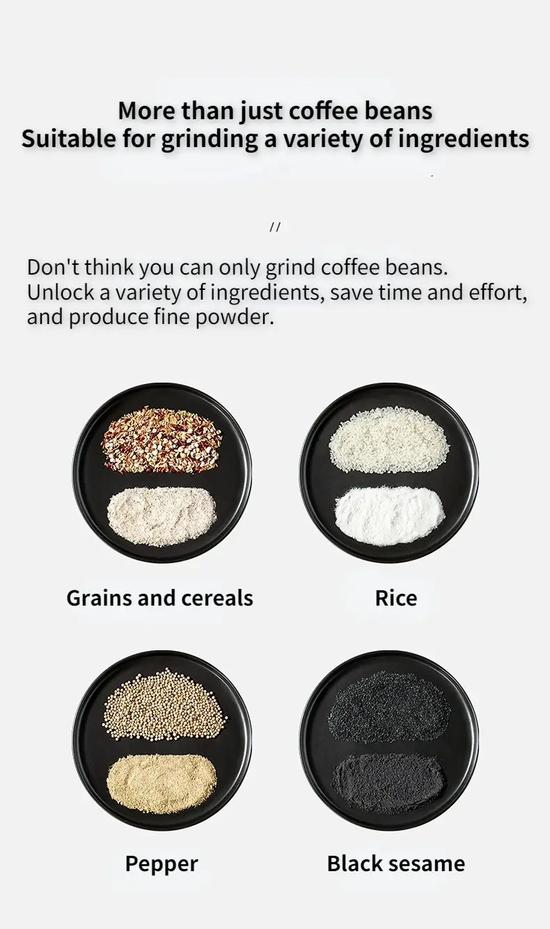 • Easy to Clean :The removable lid and easy-to-clean design make this coffee bean grinder a hassle-free addition to your kitchen.