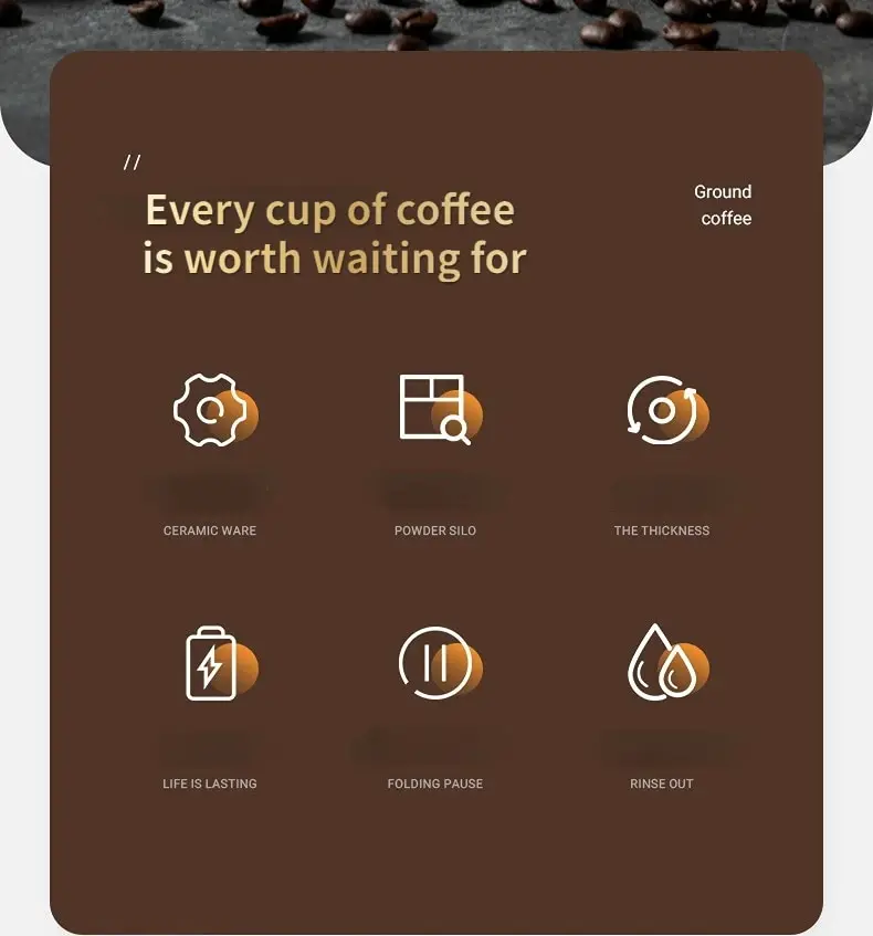 3. Strong motor power, uniform rotation, grinding stability, enjoy the coffee soon, etc.
