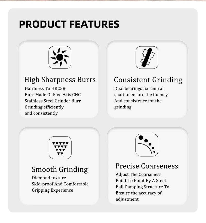 Consistent Grinding :Dual bearings fix central shaft to ensure the fluency And consistence for the grinding