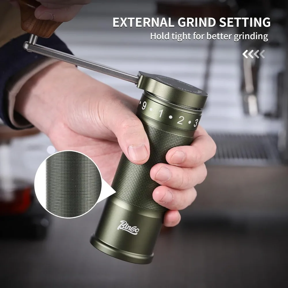 This product features a high-quality six-star CNC steel burr, which is designed to provide a consistent grind for your coffee beans, resulting in a rich and full-bodied flavor. The grinder is equipped with a three-axis bearing for uniform grinding. The magnetic folding handle offers a 90-degree rotation, making grinding easy and convenient, while also allowing for compact storage. The grinder is portable and compact, suitable for both home and outdoor activities such as camping, hiking, traveling, and business trips. It offers adjustable grinding settings with nine precision levels, allowing you to fine-tune your coffee grind. To adjust, turn the scale clockwise for a finer grind or counterclockwise for a coarser one. Each notch on the scale corresponds to 10 notches on a standard grinder, accommodating various coffee preferences. The grinder is easy to clean, with a brush included for maintaining its performance and longevity. Lastly, the bean hopper has a generous capacity, holding up to 20 grams of coffee beans for a substantial single-session grind.