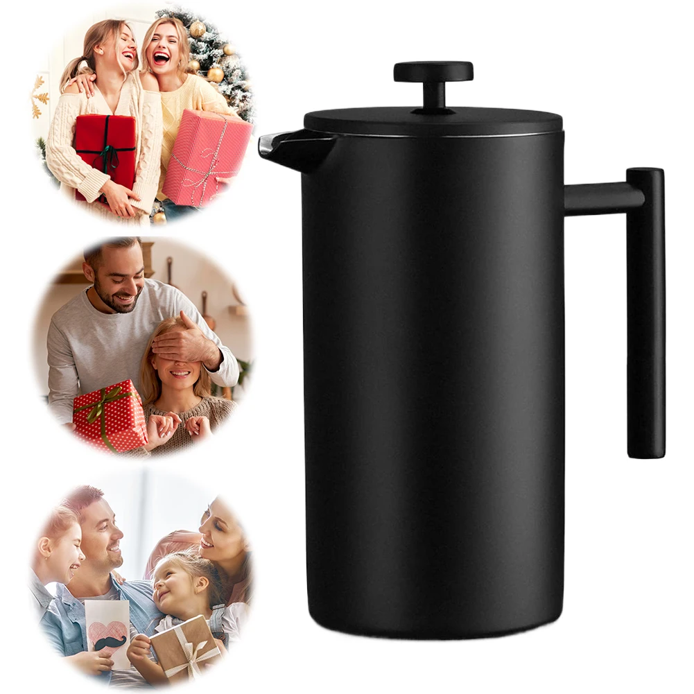 2. Double Wall Insulation: Featuring double wall insulation, the double wall insulation coffee press keeps your beverages hot or cold for up to 1 hour without burning your hands, allowing you to enjoy your coffee at the temperature.